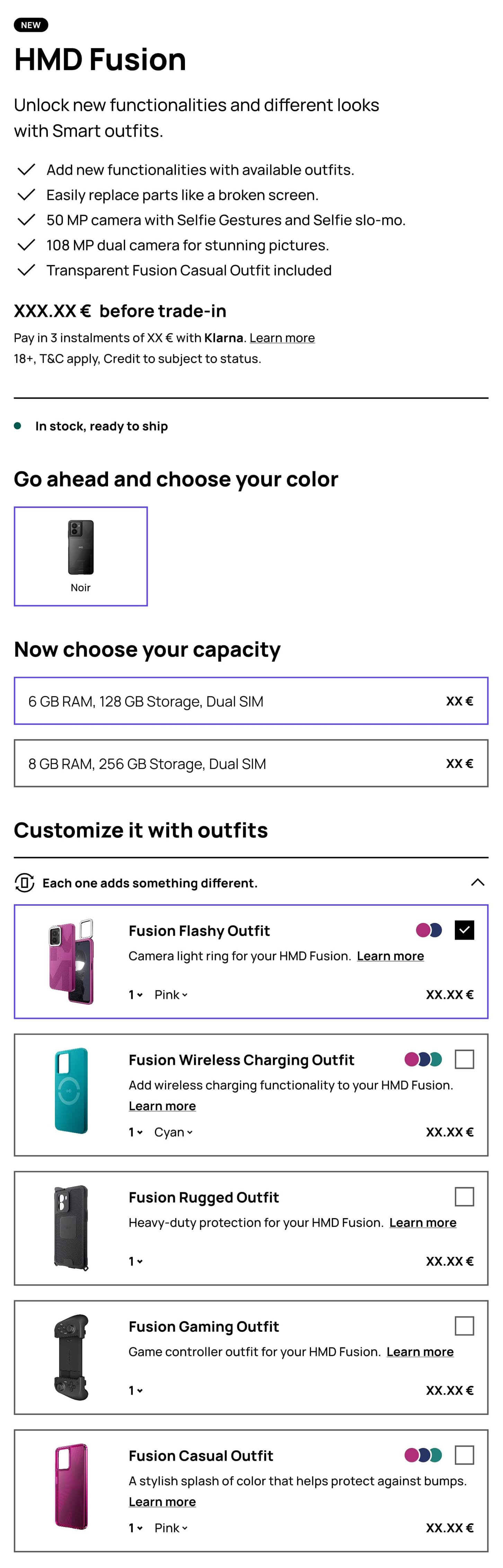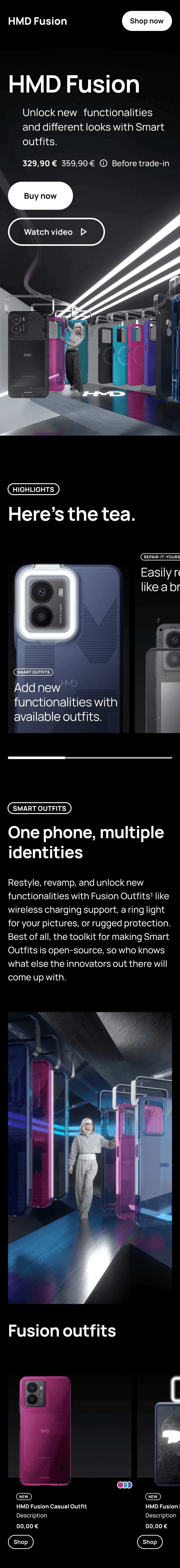 HMD’s Fusion device launched with a range of high-tech accessories, which called for bespoke UX treatment in key site areas.