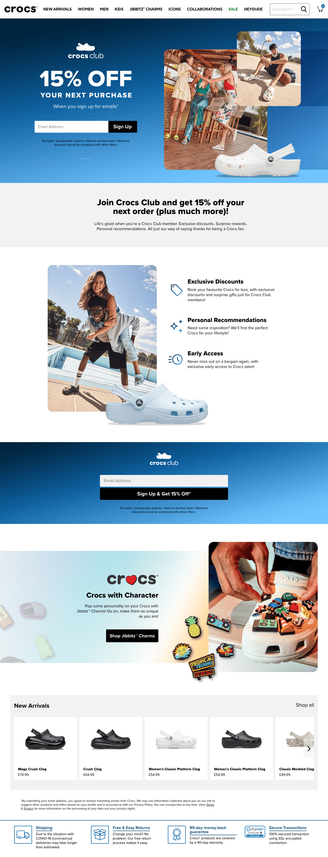 Crocs needed to revitalise their sign-up journey, so I led the re-design of all touch points including landing page, emails and website pop-ups.