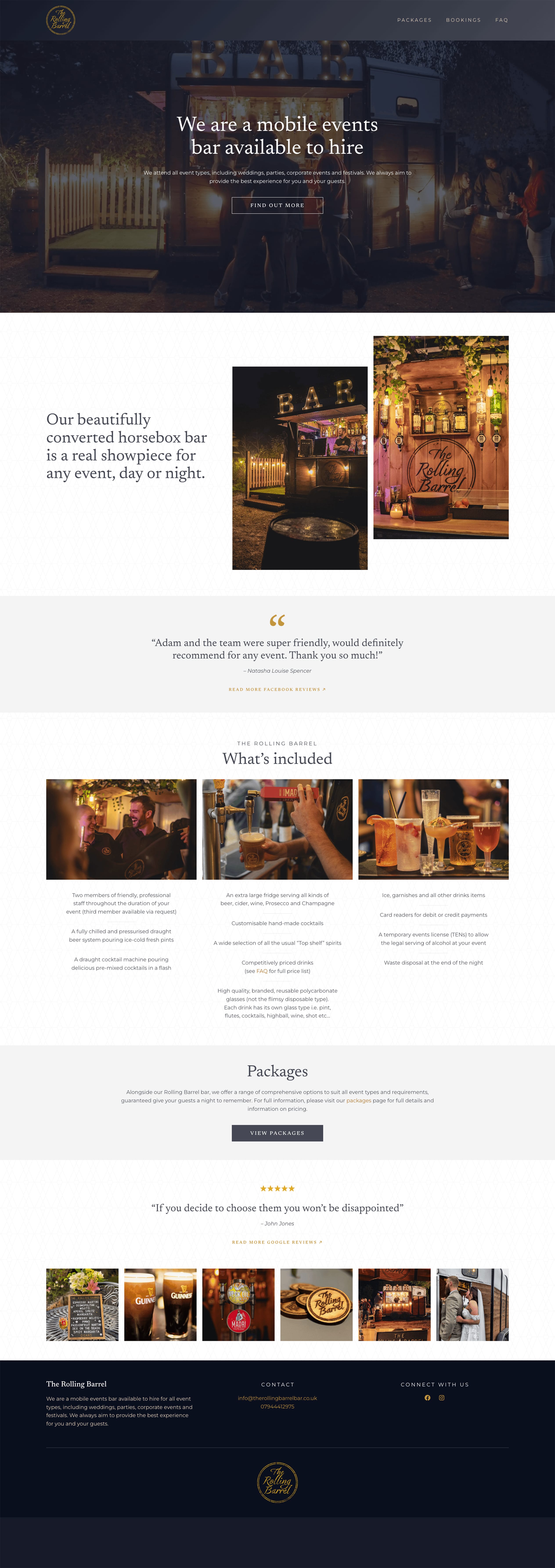 I built a bespoke WordPress site and expanded the branding for a mobile drinks events company, working around an existing logo and photography.