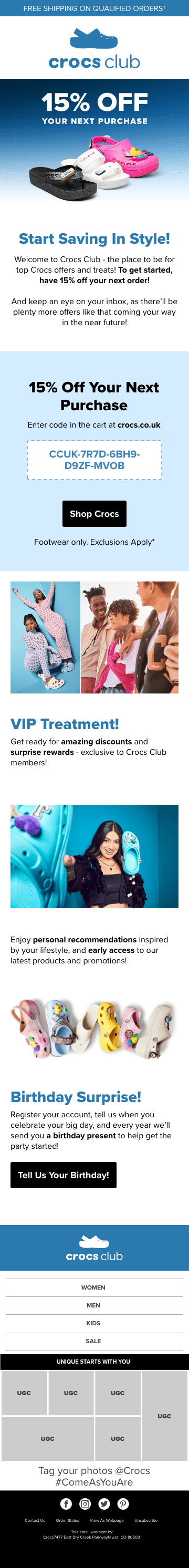 Crocs needed to revitalise their sign-up journey, so I led the re-design of all touch points including landing page, emails and website pop-ups.