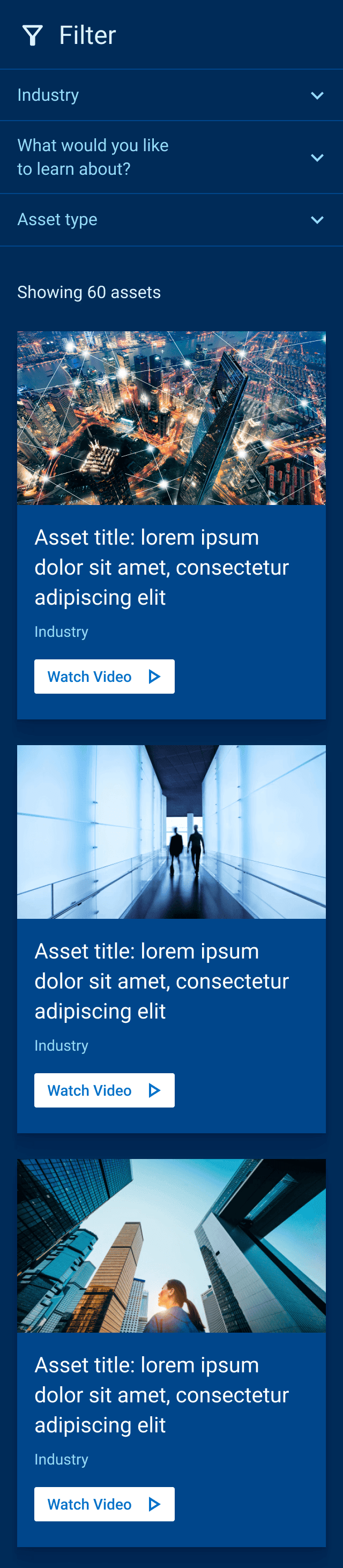 Stakeholders were asked to review all assets, identify key industries, highlight flagship content and remove anything redundant from the list. We also involved the web development team early to scope what was feasible within the project’s budget in terms of search, filters and analytics.