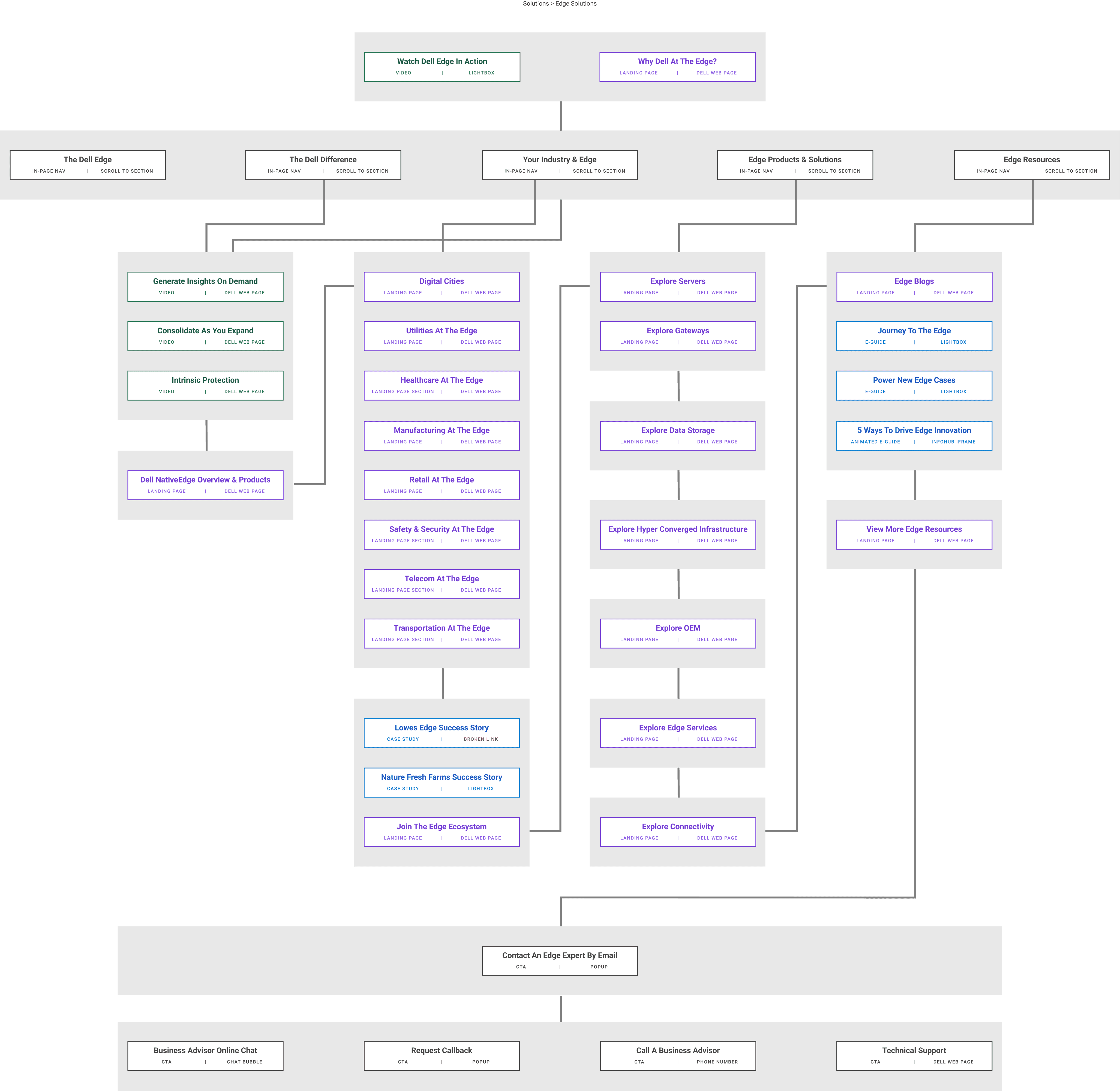 We also requested any available user data, such as click-through rates or heat maps, so that we could identify engagement patterns and usability issues. The next step was then agreed: a full audit of Dell’s existing Edge resource structure.