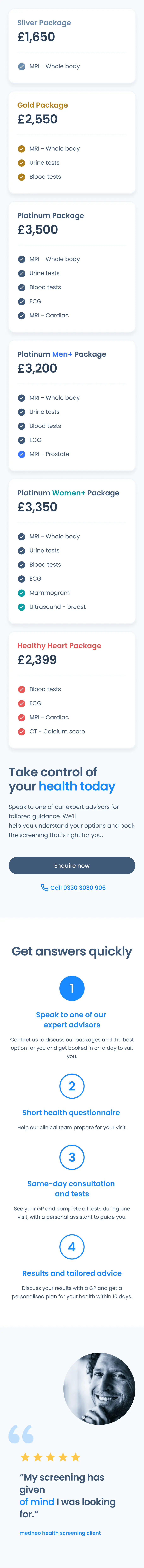 Health-screening landing page redesign