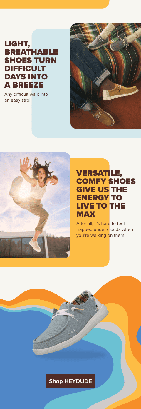 After acquiring the brand, Crocs needed hero launch content to sit within their category structure, promoting HEYDUDE's introduction.