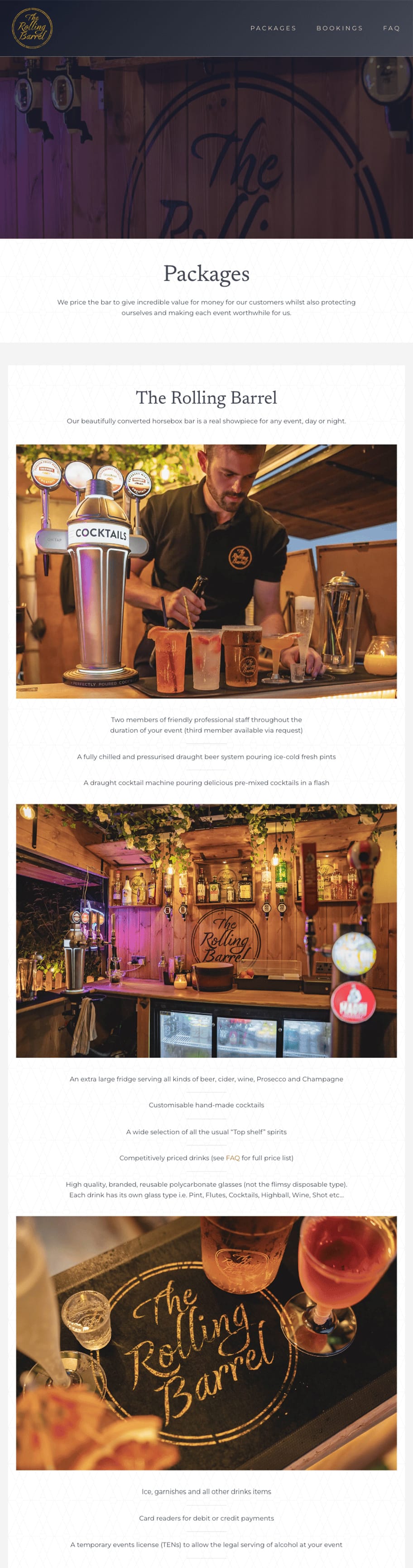 I built a bespoke WordPress site and expanded the branding for a mobile drinks events company, working around an existing logo and photography.